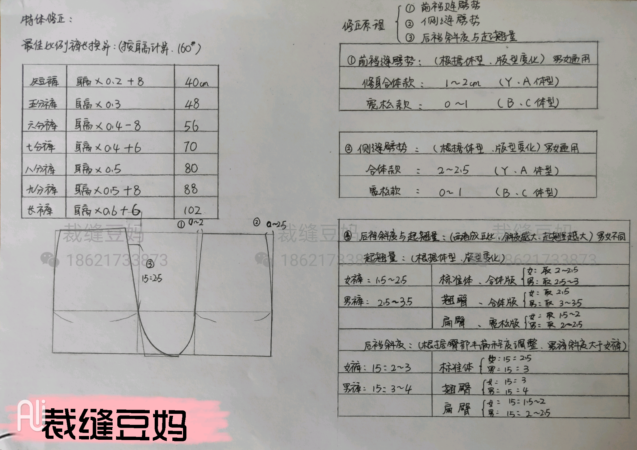 6、(裤子弊病修正)后裆斜度与起翘量