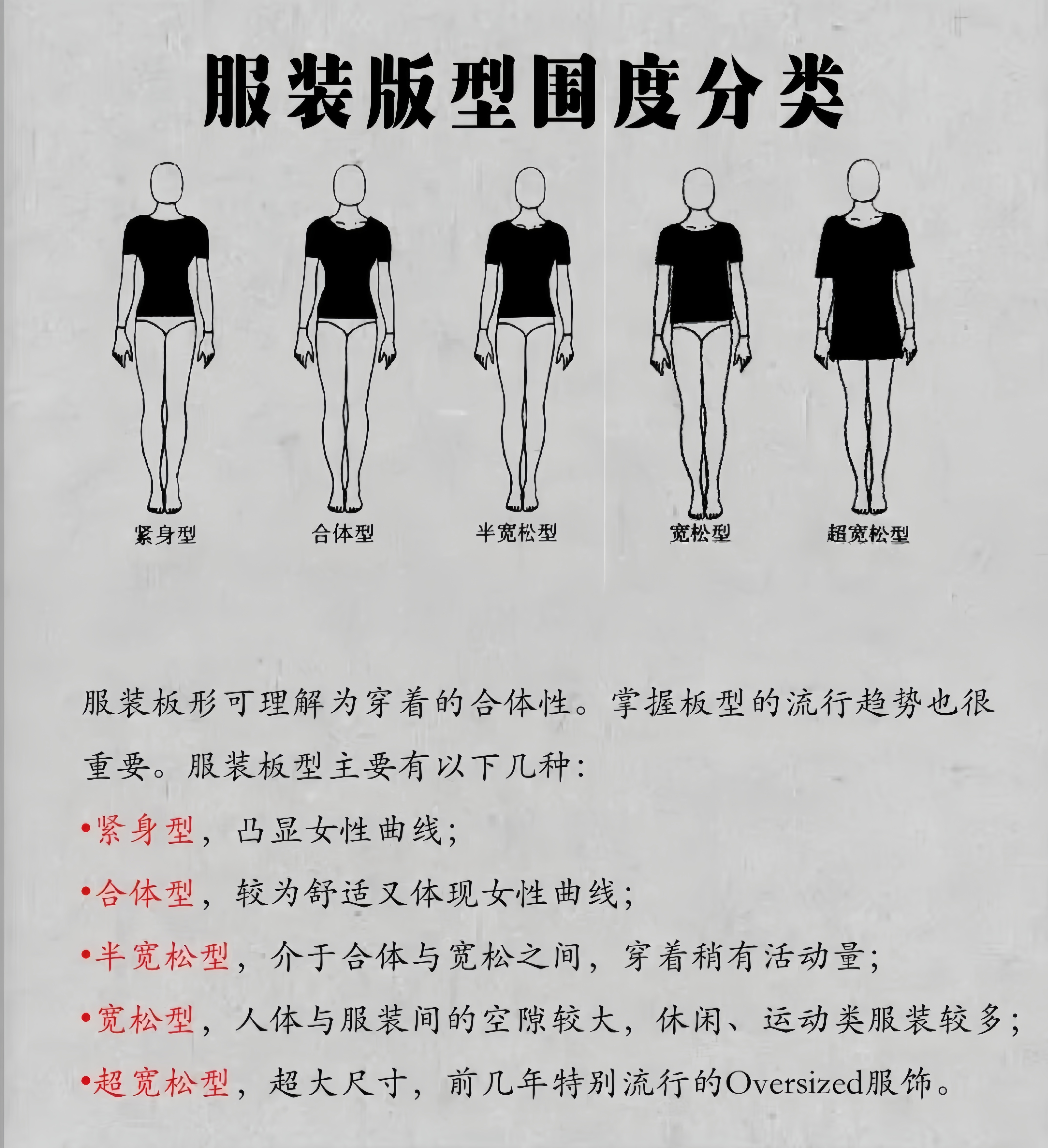 服装版型围度分类: