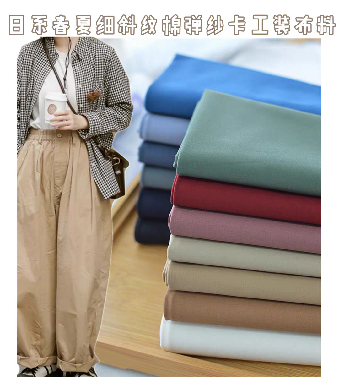 0日系复古棉弹细斜纹纱卡布料 春夏手工DIY工装休闲裤风衣外套面料【包邮】