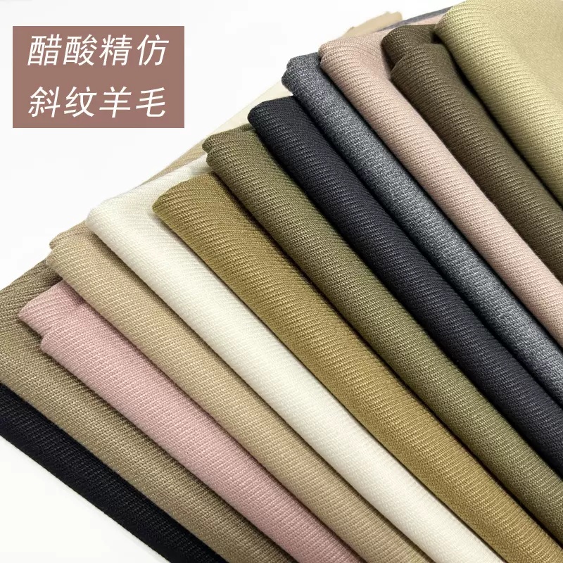 1秋冬高端精仿醋酸斜纹羊毛西装布料 高档套装风衣布料面料