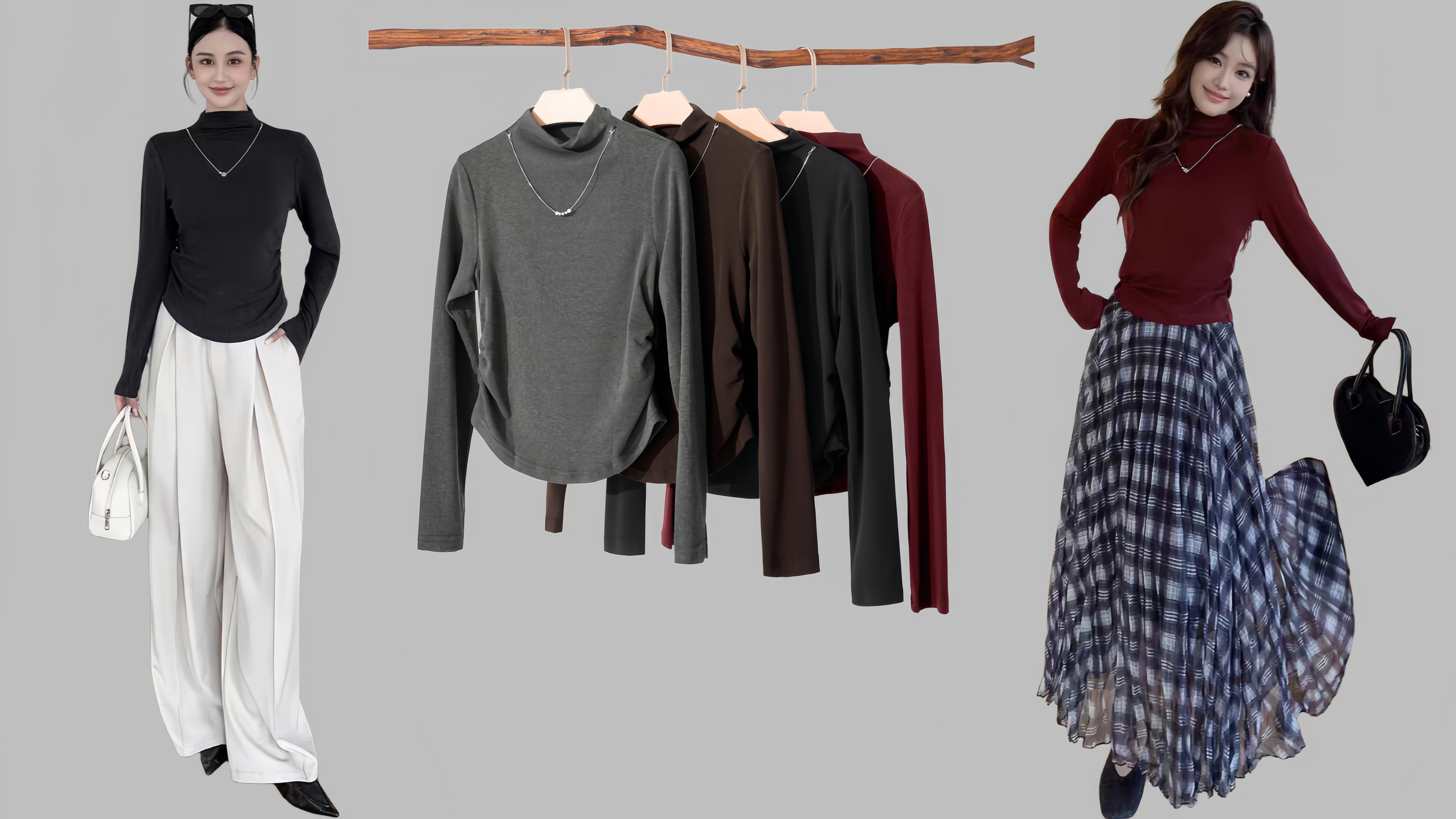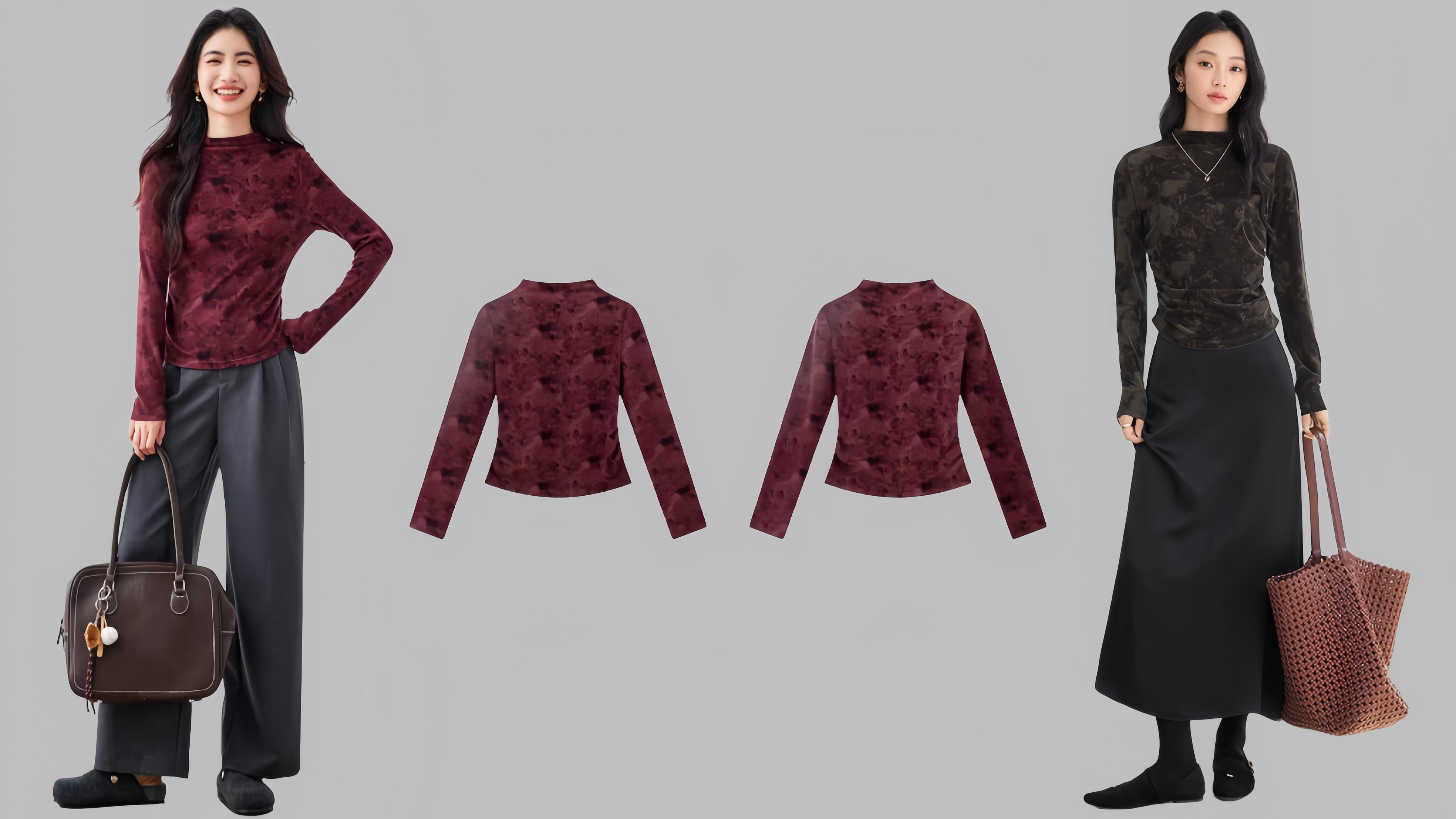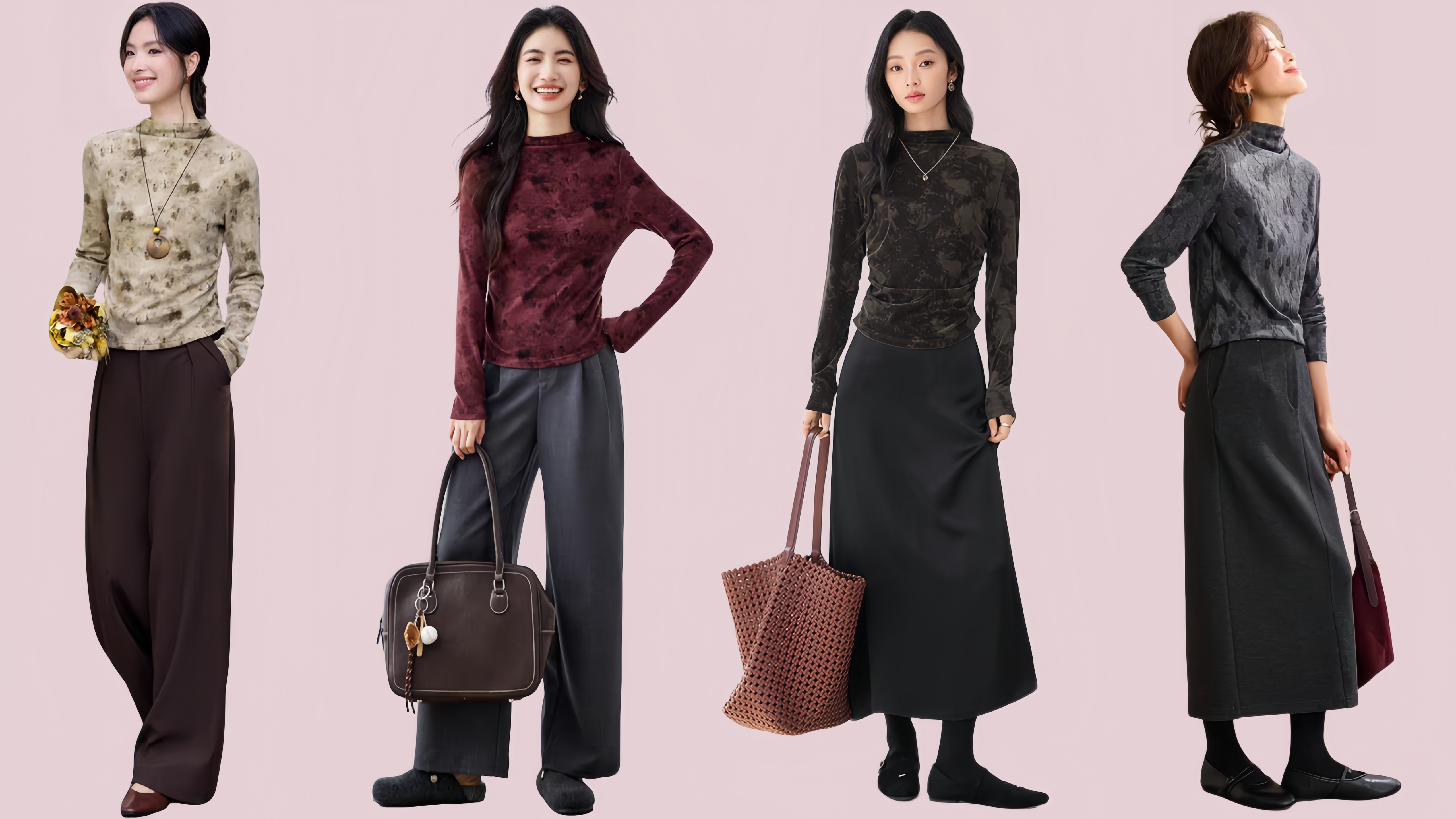→ 桑蚕丝或含丝混纺是提升气质的选择。它自带的光泽感和垂坠感,能让基础款打底衫显得很高级。